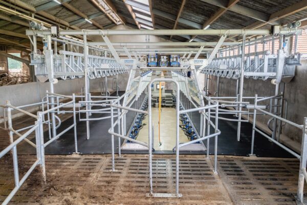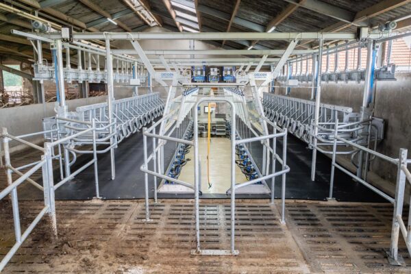 Wat deze stal zo bijzonder maakt is dat 1 kant rapit-exit is en de andere kant semi rapit-exit. Aangezien er niet genoeg ruimte was voor 2 kanten rapit-exit was het Polaris melkstalframe in deze situatie dé ideale oplossing aangezien deze stal in beide opstellingen goed te gebruiken is.